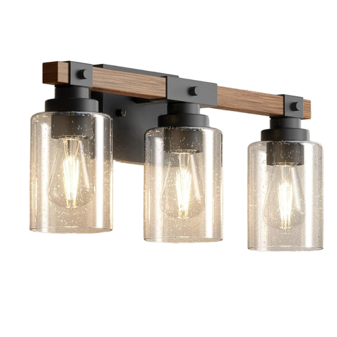 カスタム3ライトLEDバニティライトウッド浴室壁壁コンセブラックバブルガラス